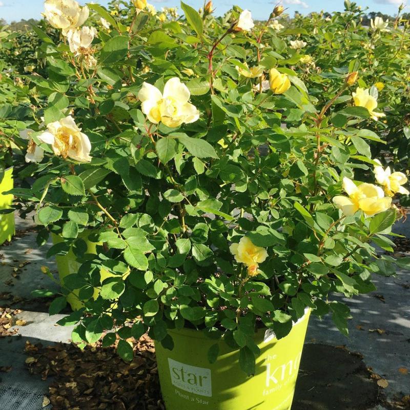 Extended Features: Beautiful yellow blooms. Flowers bloom all summer on compact mounded shrubs. Makes a great accent in any garden. Excellent disease resistance. Plant in full sun for best flowering. FEATURES: Botanical Name: Rosa 'Radsunny' PP18,562 Common Name: Rose Sunny Knock Out® Features: Heat Tolerant, Fragrant, Self-Cleaning Bloom Time: Spring - Winter Light Requirements: Full Sun Attracts Butterflies, Hummingbirds Resists Disease Mature Plant Size: 3 feet Zone 4 - 9 The Knock Out® Roses