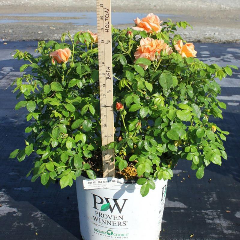 | Rosa x 'HORCOGJIL' , also known as Rose At Last®, this award-winning rose features a non-stop display of large fragrant apricot-orange flowers. Disease resistant glossy, dark green foliage. Vigorous, rounded habit makes it ideal for use in the landscape or the flower garden. Full Sun. FEATURES: Botanical Name: Rosa x 'HORCOGJIL' USPP 27,540 Common Name: Rose At Last® Features: Fragrant, Low Maintenance, Rounded Habit Bloom Time: Spring - Fall Light Requirements: Full Sun Attracts Butterflies, Birds Resists Disease Mature Plant Size: 3 feet Zone 5 - 9 Proven Winners® | |