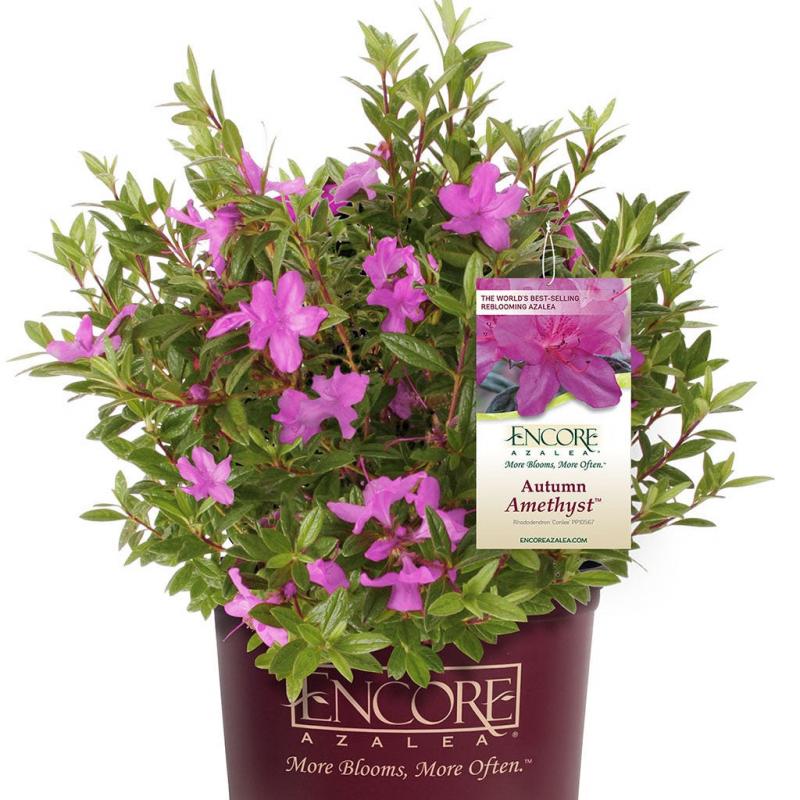 | The Autumn Amethyst(Rhododendron 'Conlee') boasts an attractive purple foliage in the winter and stunning purple blooms in spring, summer, and fall. Prefers well drained soil. FEATURES: Botanical Name: Rhododendron 'Conlee' Common Name: Encore Azalea Autumn Amethyst® Features: Rounded Bloom Time: Spring - Fall Light Requirements: Full Sun -Partial Shade Attracts Butterflies, Hummingbirds Mature Plant Size: 4 feet by 4 feet Zone 6 - 9 Encore® Azalea | |