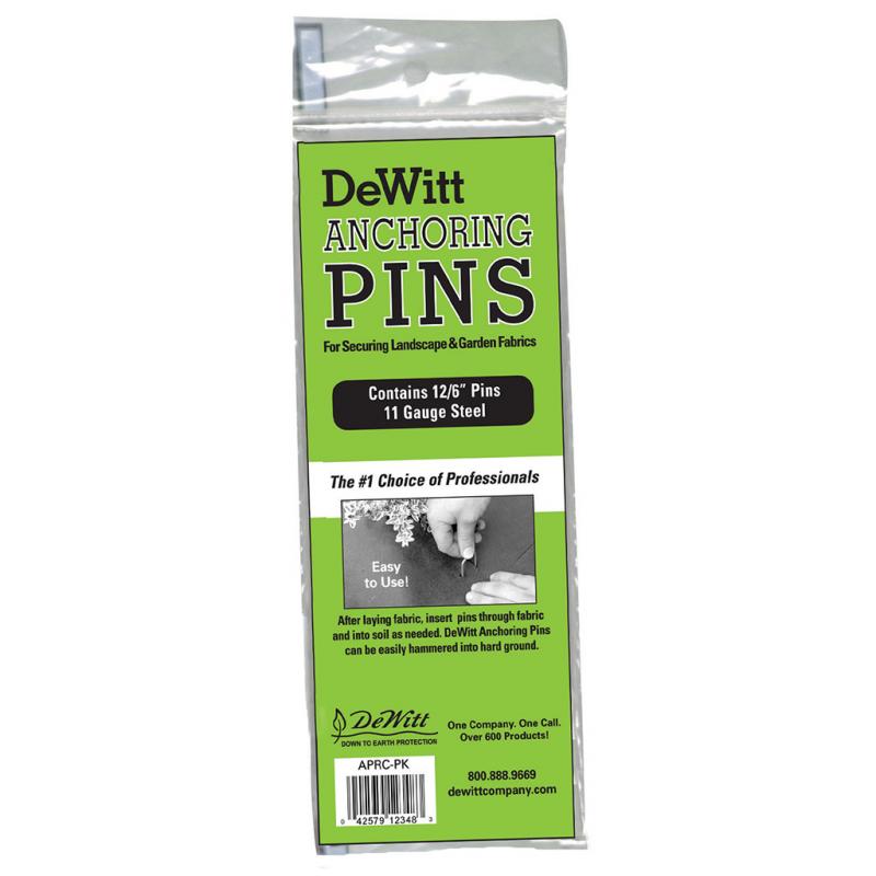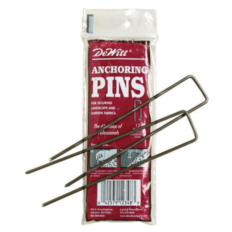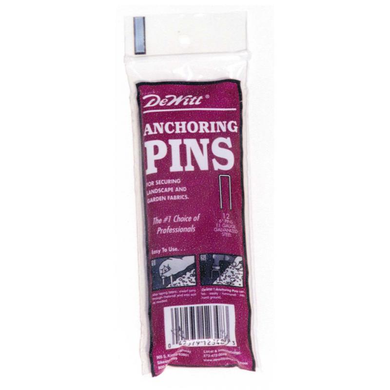 | These U-shaped steel pins properly secure and anchor landscape fabrics, ground coverings and drip irrigation tubing. Angled at their ends for faster and easier installation. Each pin is 6" x 1" x 6". |