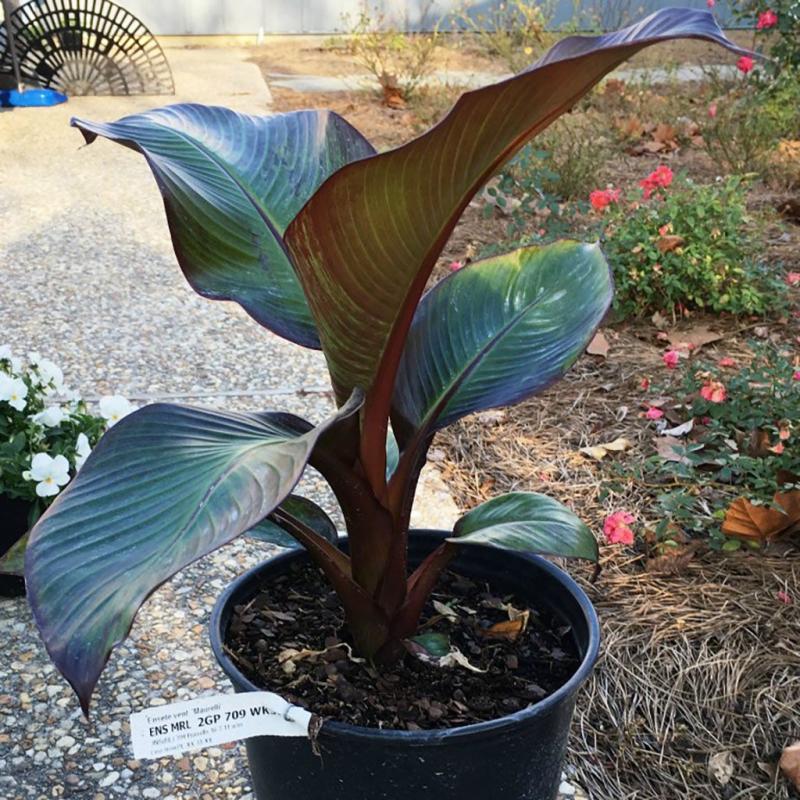 Interest: Hardy houseplant with leaves 2' long by 8" wide, can actually produce Bananas, Produces Frui