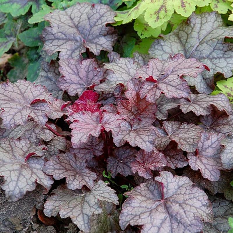 | Heuchera Amethyst Myst, also known as Coral Bells, has a silver amethyst color leaves form a compact mound. Vigorous grower that is perfect for any shaded spot in the garden. Stalks of small white flowers top the plant in summer. FEATURES: Botanical Name: Heuchera 'Amethyst Myst' Common Name: Coral Bells Amethyst Myst Features: Evergreen, Mounding Habit, Rounded Habit, Foliage Interest Bloom Time: Early Summer Light Requirements: Full Shade -Partial Sun Attracts Bees, Butterflies, Hummingbirds Resists Deer Mature Plant Size: 12 - 16 inches Zone 4 - 9 | |