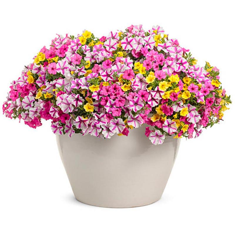 | Wonderful mix of Angelonia Angelface® Cascade Blue, Verbena Superbena® Red and Verbena Superbena® Whiteout™ in a 12 inch bowl or a 12 inch hanging basket! FEATURES: Common Name: American Rhythm Light Requirements: Full Sun Proven Winners® | |
