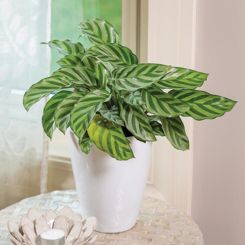 Extended Features: Freddie is a prayer plant, the common name for plants that tend to fold their foliage as night falls. Prayer plants include plants in the following genera: Calathea, Maranta, Stromanthe, and Ctenanthe. Calathea are grown for their beautifully ornamental leaves. Freddie has bicolored striped foliage that alternates between a silvery or soft green and deep green bands. Other common names include 'Zebra Plant'. Calathea concinna has been reclassified as Goeppertia concinna.