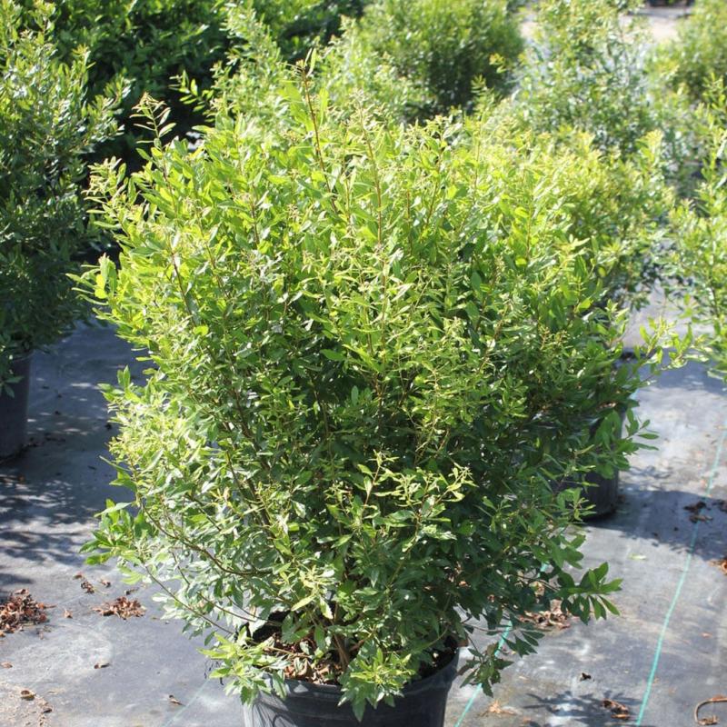 | Myrica cerifera, also known as Southern Wax Myrtle, this semi-evergreen shrub / small tree has a wide, open branching habit. Fast growth rate makes it useful in a wide range of situations. Sun to light shade. Highly salt tolerant. FEATURES: Botanical Name: Myrica cerifera Common Name: Southern Wax Myrtle Features: Evergreen, Fragrant Foliage, Salt Tolerant, Native to North America Bloom Time: Grown for Foliage Light Requirements: Full Sun -Partial Sun Resists Deer, Rabbits Mature Plant Size: 10 - 12 feet Zone 7 - 9 | |