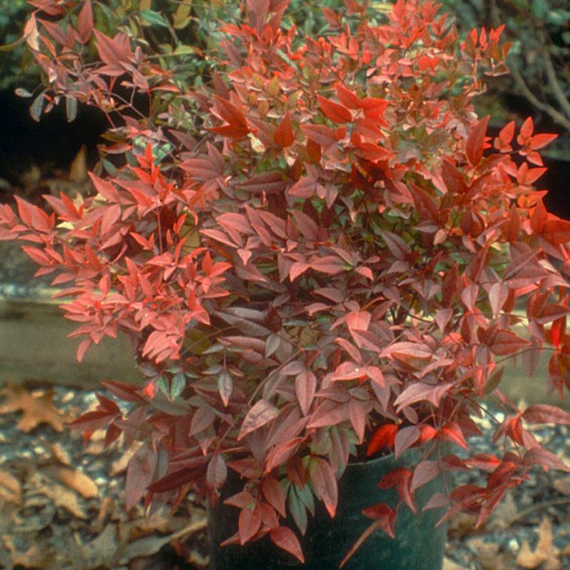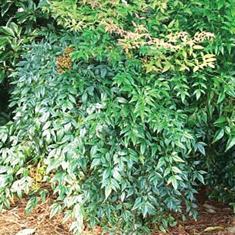 | Nandina domestica, also known as Heavenly Bamboo, this shrub is a year-round attraction with many uses from hedges to accents. This evergreen to semi-evergreen is an attractive foliage that performs well even under harsh conditions. In Spring, little white flowers with golden anthers appear in long arching panicles at the tips of the branches. In the fall, this shrub produces non-edible green berries which ripen to bright red throughout the fall to winter. It's foliage emerges purple in the spring, ripens to a soft green then matures to purple to reddish-purple in the fall. This Nandina really has amazing year-round color! Please note, this variety is an invasive species in North Carolina and if ingested, can be toxic to livestock, pets and wildlife. FEATURES: Botanical Name: Nandina domestica Common Name: Nandina (Heavenly Bamboo) Features: Evergreen, Semi-Evergreen, Grown for Foliage, Winter Interest, Year-round Interest, Produces Berries Bloom Time: Grown for Foliage Light Requirements: Full Sun -Partial | |