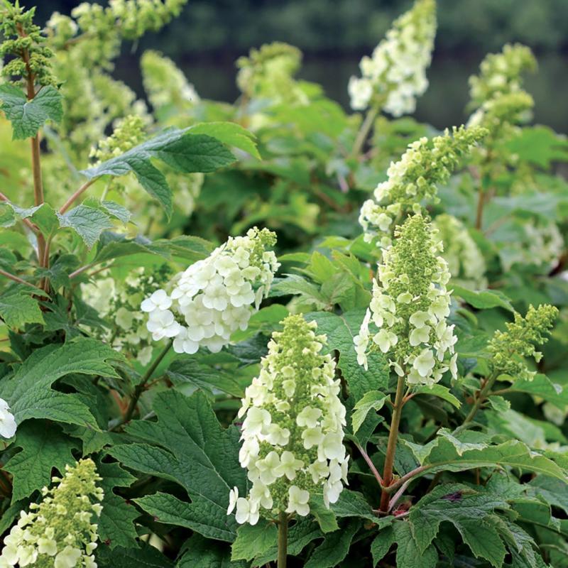 | Hydrangea quercifolia 'Alice', also known Oakleaf Hydrangea Alice has beautiful 12 inch long white to pink blooms in late June. Deep green foliage turning to shades of red, orange and purple in fall. Light shade. FEATURES: Botanical Name: Hydrangea quercifolia 'Alice' Common Name: Oakleaf Hydrangea Alice Features: Winter Interest, Cut Flowers Bloom Time: Summer Light Requirements: Partial Shade Resists Disease Mature Plant Size: 6 - 8 feet Zone 3 - 9 | |