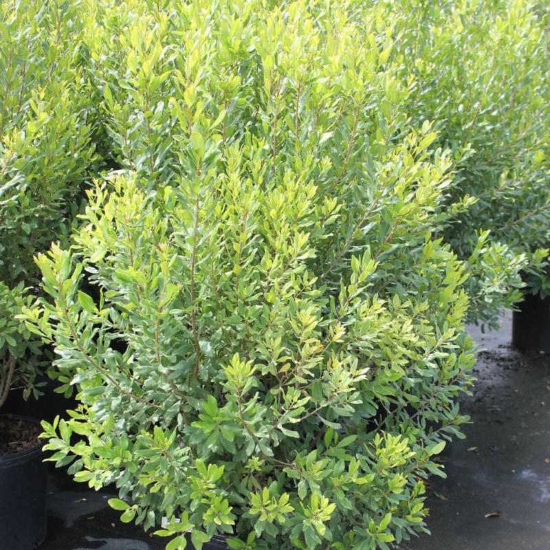 | Myrica pensylvanica, also known as Northern Bayberry or Wax Myrtle, this Glossy green leaves. Aromatic gray berries in late summer and fall, used to make candles. Thrives in poor sandy soil. Sun to part shade. FEATURES: Botanical Name: Myrica pensylvanica Common Name: Northern Bayberry Features: Fragrant Foliage, Rebloomer, Winter Interest, Drought Tolerant, Native to North America Bloom Time: Grown for Foliage Light Requirements: Full Sun -Partial Sun Attracts Birds Mature Plant Size: 9 feet Zone 4 - 8 | |