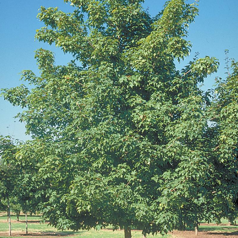 | • Height 50’-60’ • Fast growing hardy tree. Fabulous crimson fall color, lasting till thanksgiving. Great lawn shade tree. Red Sunset has orange red color. | |