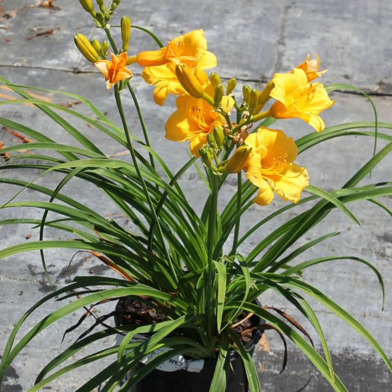 | Hemerocallis 'Stella De Oro', also known as Daylily, this perennial is a beautiful color accent in any landscape with its yellow-gold ruffled flowers. It is a repeat bloomer and blooms nearly continuously from early summer on. Award winner. Sun to partial shade. Highly salt tolerant in moist to well drained soils. FEATURES: Botanical Name: Hemerocallis 'Stella De Oro' Common Name: Daylily Stella De Oro Features: Salt Tolerant, Fragrant, Drought Tolerant Bloom Time: Summer Light Requirements: Full Sun Attracts Butterflies, Hummingbirds Resists Rabbits Mature Plant Size: 12 - 15 inches Zone 4 - 9 | |