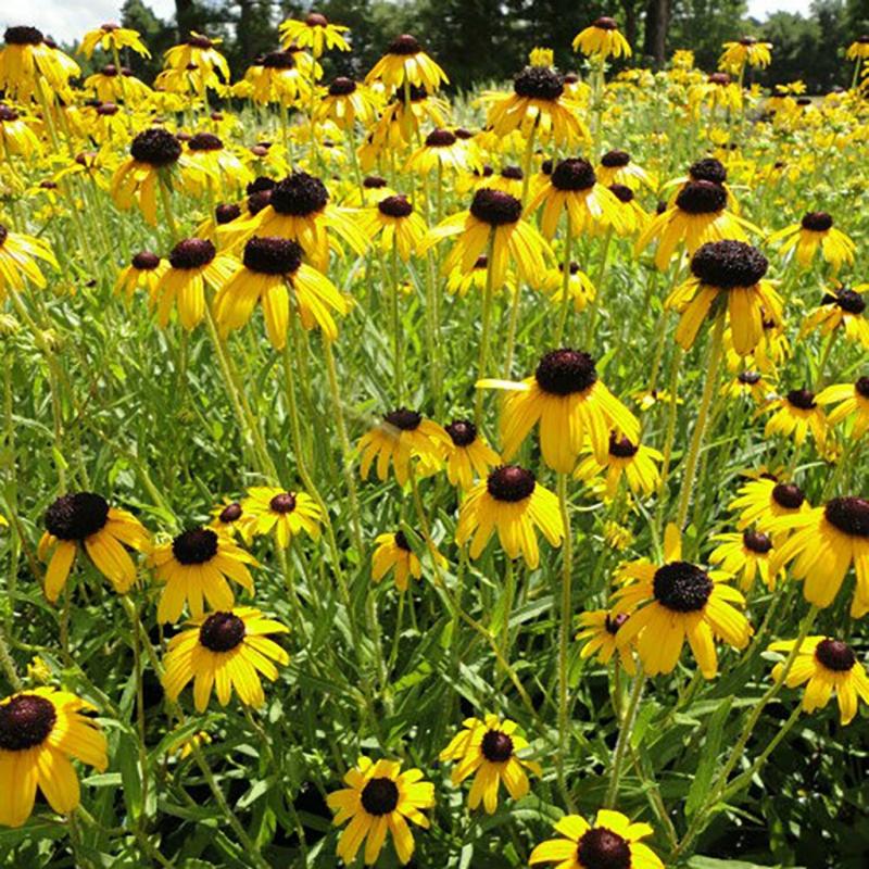 Extended Features: Rudbeckia fulgida var. sullivantii 'Goldsturm', also known as Black-Eyed Susan, this bright perennial brightens sunny gardens with their cheery golden yellow 4-inch wide flowers with black center. Blooms July thru September. Full sun. FEATURES: Botanical Name: Rudbeckia fulgida var. sullivantii 'Goldsturm' Common Name: Black-Eyed Susan Goldsturm Features: Compact, Drought Tolerant, Upright Habit, Native to North America Bloom Time: Summer - Fall Light Requirements: Full Sun Attracts Butterflies Resists Deer Mature Plant Size: 24 - 36 inches Zone 3 - 9