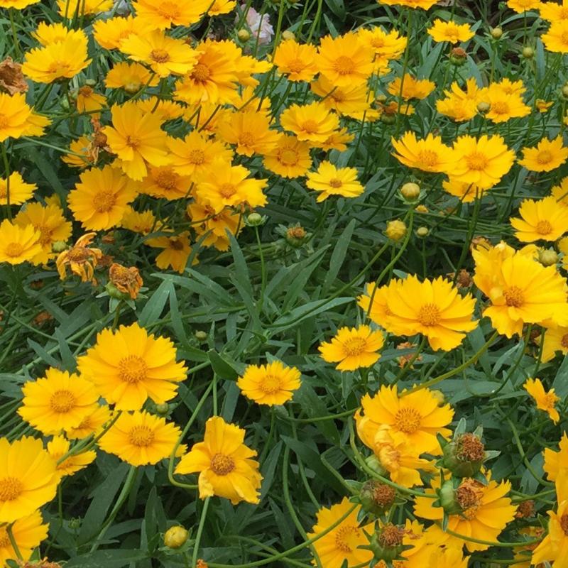 Extended Features: Award winning thread leaf coreopsis. Repeating Bright yellow flowers during summer. Easy to grow. Plants as clumps along borders. Sun to part shade