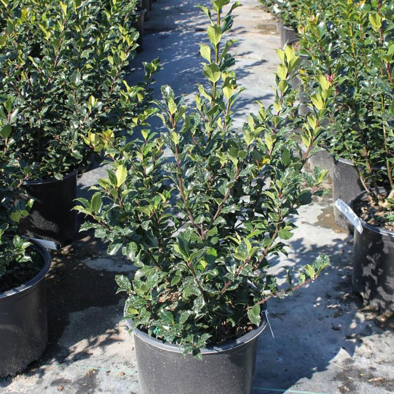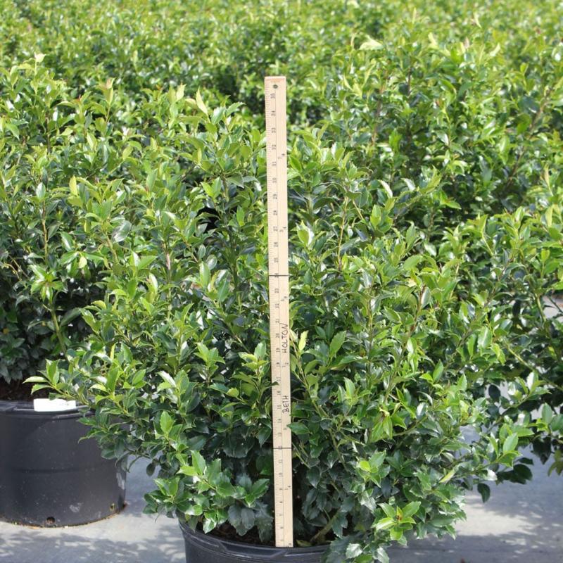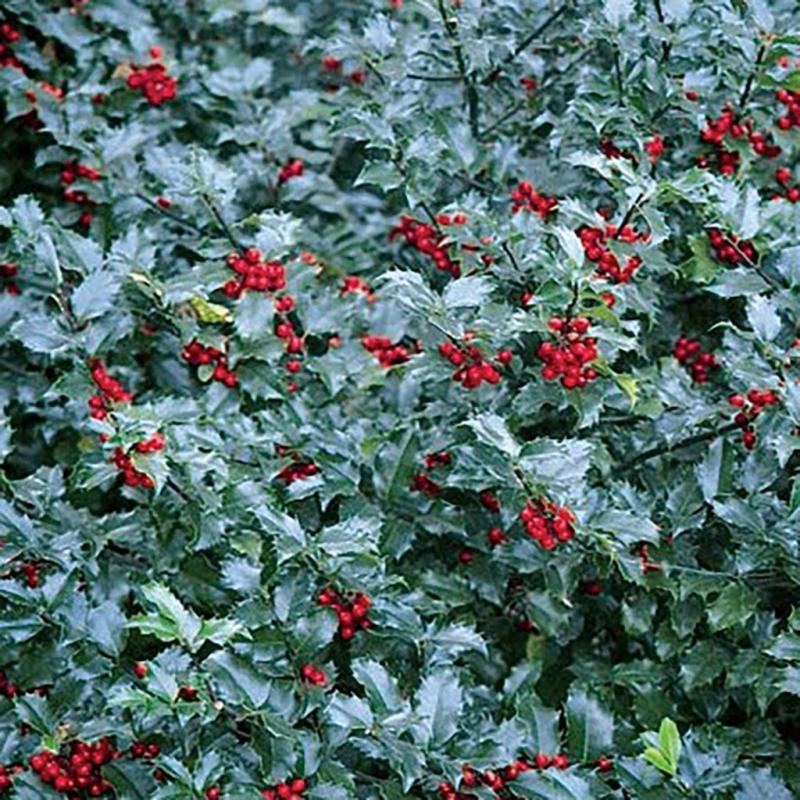 | Ilex x meserveae 'Blue Maid', also known as Blue Holly, this fast growing evergreen has dark glossy green foliage. Broad pyramidal shape and an abundance of red berries makes this perfect for any landscape. Plant in full sun to part shade. FEATURES: Botanical Name: Ilex x meserveae 'Blue Maid' Common Name: Holly Blue Maid® Features: Evergreen, Produces Berries, Grown For Foliage, Winter Interest Bloom Time: Fall Light Requirements: Full Sun -Partial Sun Attracts Birds Resists Deer Mature Plant Size: 8 - 10 feet Zone 5 - 9 | |