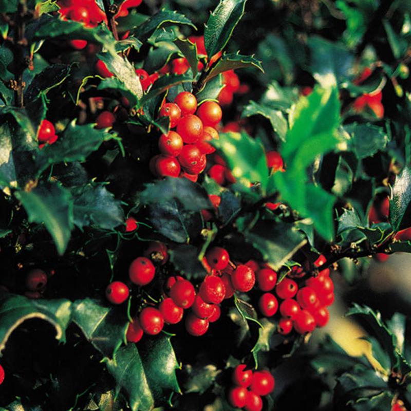 | • Grows 3’ to 4’ tall • Smallest Blue Holly. Blue-green leaves with red berries | |