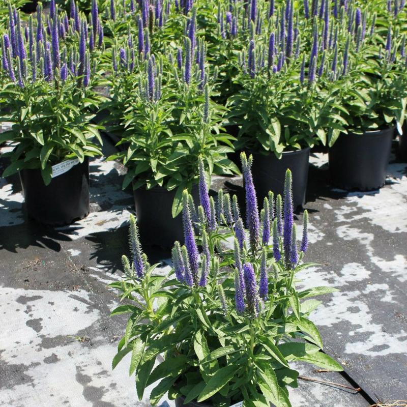 | Veronica spicata 'Glory', also known as Speedwell, this upright forming perennial produces clumps of dark blue vertical flower spikes in summer. Attracts butterflies and is deer and rabbit resistant. Great perennial for rock gardens and landscapes. Prefers full to part sun. We recommend that you remove spent flowers spikes to encourage additional blooming. FEATURES: Botanical Name: Veronica spicata 'Glory' PP18,932 Common Name: Speedwell Royal Candles Features: Upright Habit, Low Maintenance Bloom Time: Spring - Fall Light Requirements: Full Sun Attracts Butterflies, Hummingbirds Resists Deer, Rabbits Mature Plant Size: 12 - 18 inches Zone 3 - 9 | |