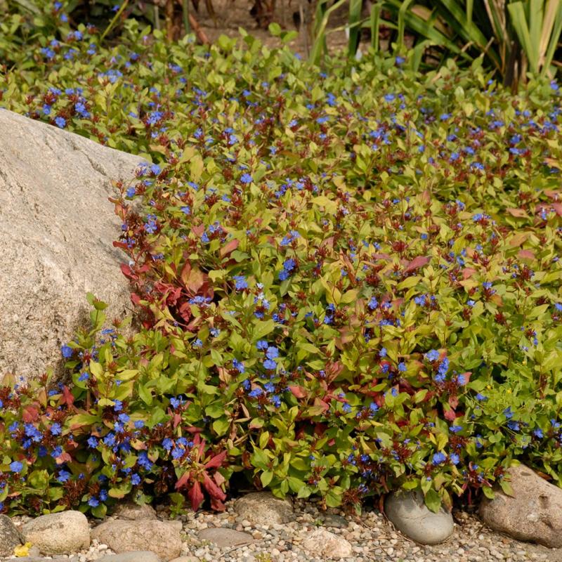 | Ceratostigma plumbaginoides, also known as Hardy Plumbago, this ground cover provides interest in late summer, after many other perennials are finished blooming. The foliage is green during the summer, then turns a beautiful bronzy-red in fall. It provides the perfect backdrop for the brilliant gentian blue blooms which are present from late summer until the first hard frost. Use Plumbago as an under planting to shrubs or large perennials or allow it to ramble over small rocks. FEATURES: Botanical Name: Ceratostigma plumbaginoides Common Name: Hardy Plumbago or Leadwort Features: Seasonal Interest, Ground cover Bloom Time: Summer - Fall Light Requirements: Full Sun - Partial Shade Attracts Butterflies Resists Deer Mature Plant Size: 8 - 12 inches Zone 5 - 9 | |