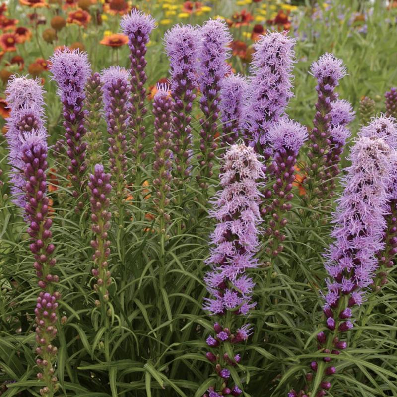 | Liatris spicata 'Kobold', also known as Gayfeather, this compact plant features attractive violet-blue spiky flowers. Earliest to bloom in the Liatris family and attracts tons of butterflies! Flowers in July. Full sun. FEATURES: Botanical Name: Liatris spicata 'Kobold' Common Name: Gayfeather Kobold Features: Drought Tolerant, Good Cut Flowers, Upright Habit, Native to North America Bloom Time: Summer Light Requirements: Full Sun Attracts Butterflies, Hummingbirds, Birds Mature Plant Size: 15 - 20 inches Zone 3 - 9 | |