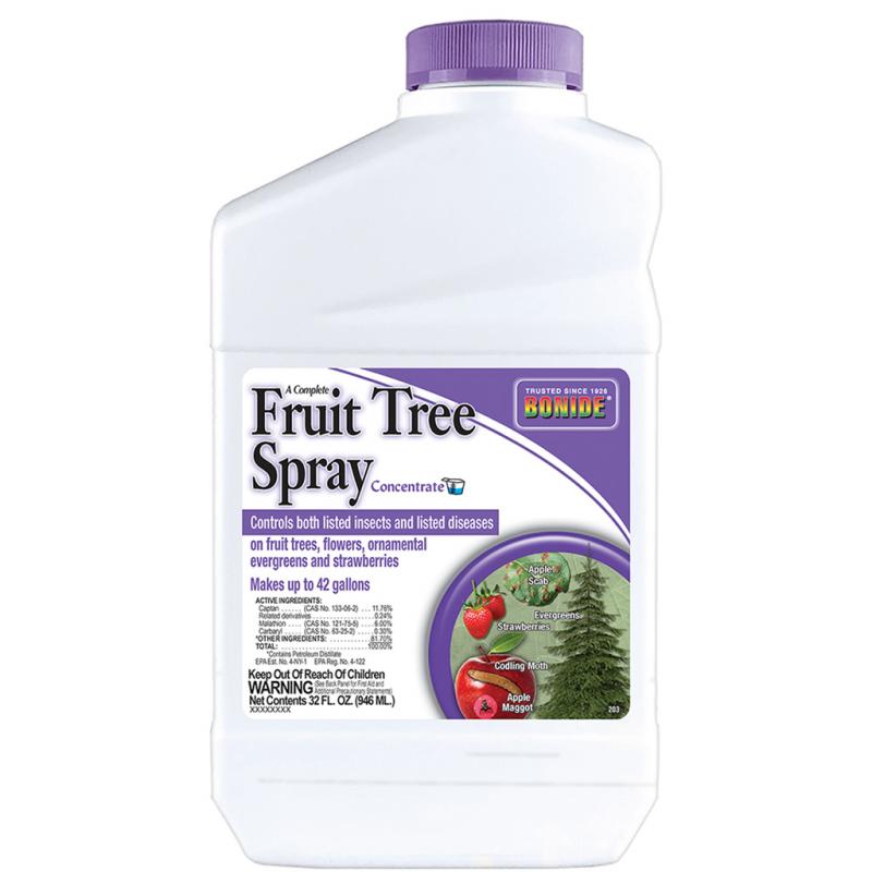 | Captain Jack's® 2-in-1 Fruit Tree Spray controls both insects, and diseases on fruit trees, flowers, evergreens, and strawberries. Excellent for fungus and insect control. This 2-in-1 formula is approved for Organic Gardening and is an excellent product for the home orchardist. Product instantly mixes with water and should be applied using either a hose-end sprayer or tank sprayer. Carefully read and use according to label directions. Use as little as 1-1/2 tablespoons per gallon. Active Ingredient : 70% Cold-Pressed Neem Oil. Concentrated formula makes up to 40 gallons. |
