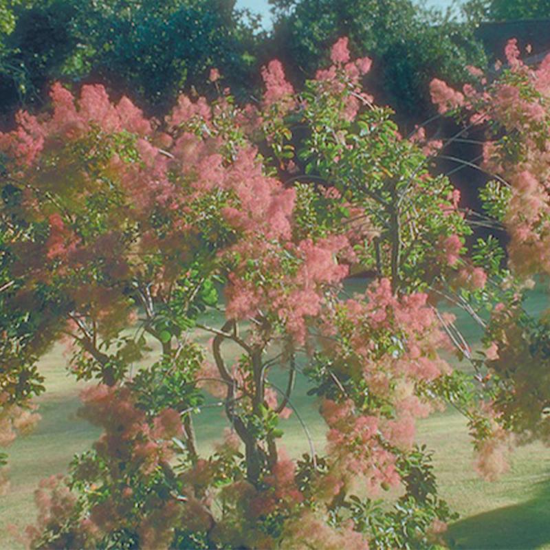 | • Height 15’ x 15’ Spread • Burgundy leaves with pinkish-purple flower puffs. Great accent tree. Leaves turn yellow/orange in fall. Clumping form, low branched tree. | |