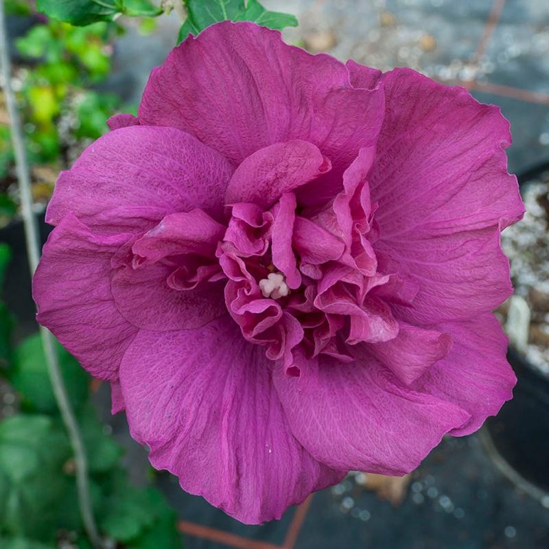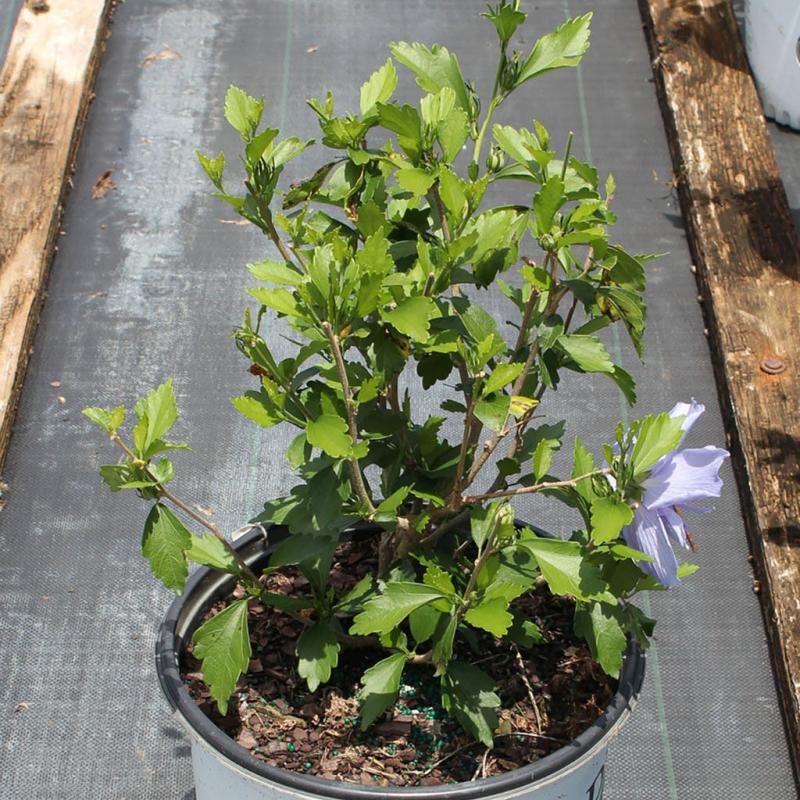 | Hibiscus syriacus 'Notwood', also known as Rose of Sharon Blue Chiffon® Hibiscus had large single blue blooms accented with a lacy center. Attracts butterflies and hummingbirds to its summer flowers. Heat, drought tolerant and moderately salt tolerant in well drained soils. Also resistant to deer. FEATURES: Botanical Name: Hibiscus syriacus 'Notwood' PP20,574 Common Name: Rose of Sharon Blue Chiffon® Features: Heat Tolerant, Drought Tolerant, Salt Tolerant Bloom Time: Summer - Fall Light Requirements: Full Sun Attracts Birds, Butterflies, Hummingbirds Resists Deer Mature Plant Size: 8 - 12 feet Zone 5 - 9 Proven Winners® | |