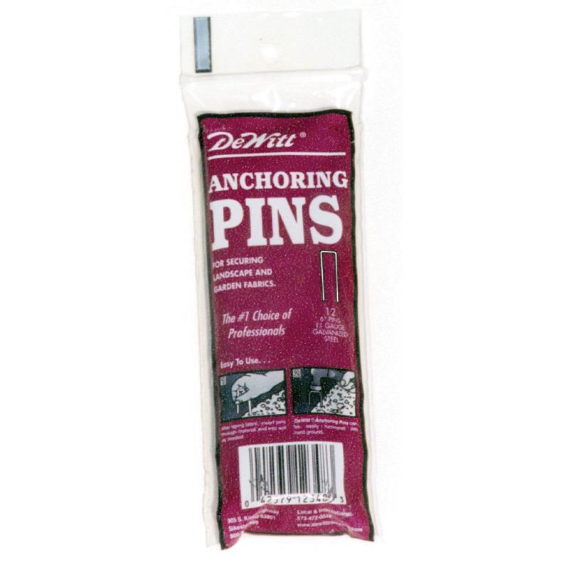 | These U-shaped steel pins properly secure and anchor landscape fabrics, ground coverings and drip irrigation tubing. Angled at their ends for faster and easier installation. Each pin is 6" x 1" x 6". |