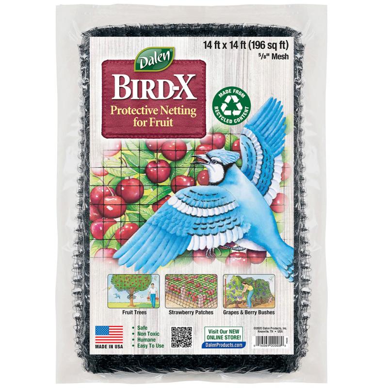 Extended Features: Bird-X protects fruit and berries from thieving birds and other garden pests. Bird-X is a strong and durable black 5/8" polypropylene mesh with UV inhibitors. Made in the U.S.A.
