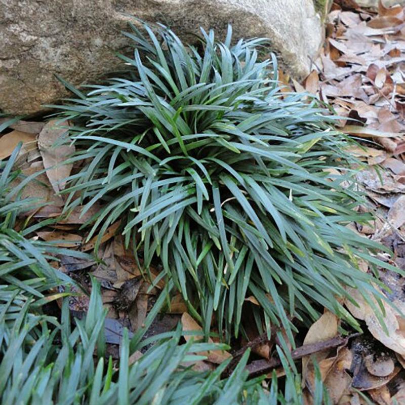 Leaf: Green and white variegated, narrow, grass-like leaves.