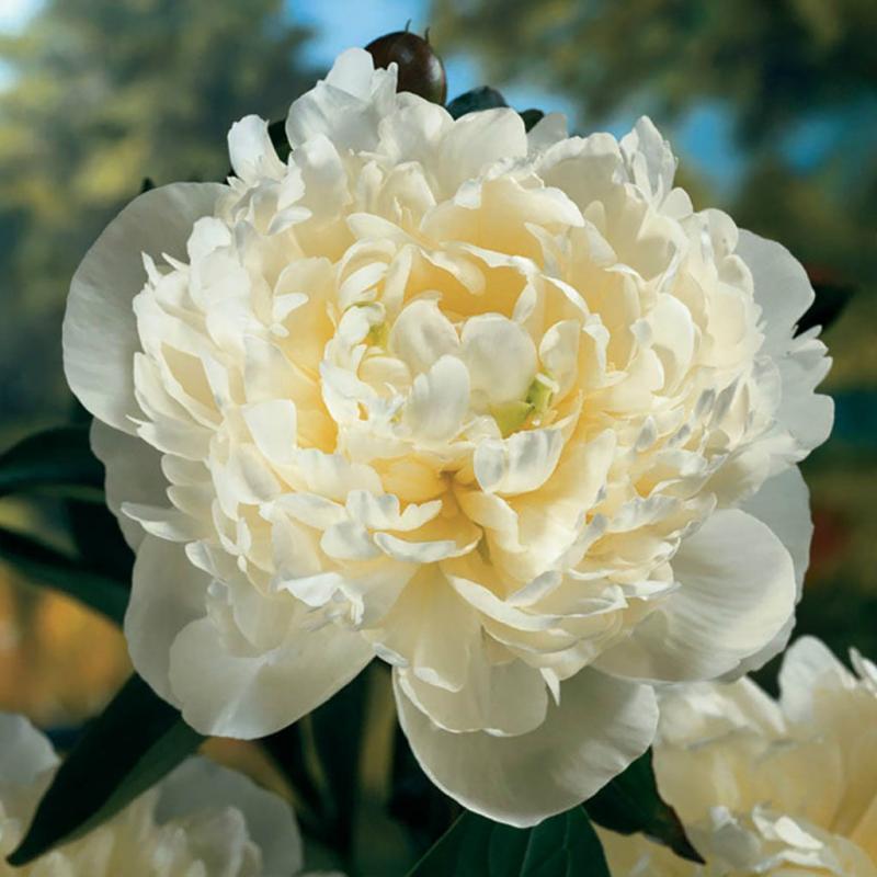 Extended Features: Paeonia lactiflora 'Duchesse de Nemours', also known as Peony, this vigorous evergreen features free-flowering scented double white crown-shaped blossoms in late spring to early summer. Thrives in rich, well-drained soils. Makes a great specimen plant or can be planted in groups along borders, in beds or as an informal hedge. FEATURES: Botanical Name: Paeonia lactiflora 'Duchesse de Nemours' Common Name: Peony Duchesse de Nemours Features: Good Cut Flowers, Fragrant Flower, Low Maintenance Bloom Time: Spring Light Requirements: Full Sun Attracts Butterflies Resists Deer, Rabbits Mature Plant Size: 2 - 3 feet Zone 4 - 8