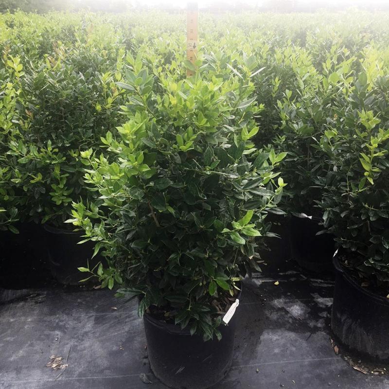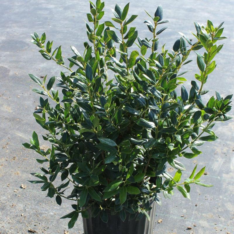 Extended Features: Large round growing narrow-leafed evergreen shrub. Shiny dark green leaves with red berries. It can easily grow 8-10 ft without pruning.