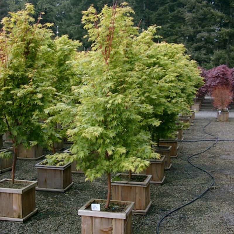 | Showy red stems all fall and winter on this upright growing Japanese Maple with green leaves | |