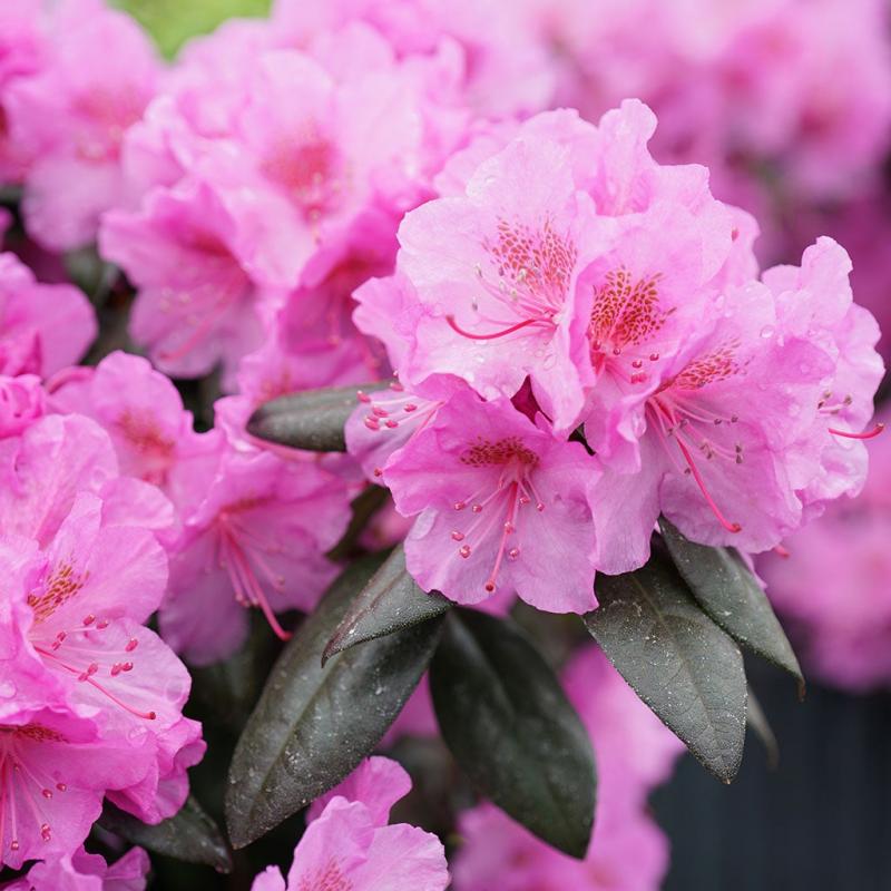 | Be the first on your block with colorful blooms in spring with Black Hat® rhododendron. This very early blooming rhododendron is a confection of ruffled lavender flowers in the first few weeks of spring, each a rounded cluster atop a spray of leathery evergreen foliage. It's the foliage that gives this plant its name, in fact - its a very dark purple-green, reaching near black tones, especially in cooler weather. This gives in undeniably drama and chic and really sets it apart from other early blooming rhodies. Thick, durable blooms ensure longer lasting blooms over a longer period, too. FEATURES: Botanical Name: Rhododendron x Black Hat® PPAF Common Name: Rhododendron Black Hat® Features: Evergreen Bloom Time: Spring Light Requirements: Full Sun -Partial Sun Attracts Bees Mature Plant Size: 3 feet high by 3 feet wide Zone 4 - 8 Proven Winners® | |