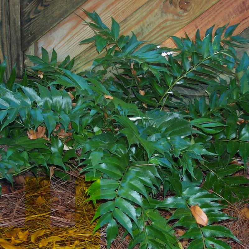 | Cyrtomium falcatum 'Rochfordianum', also known as Japanese Holly Fern is great for cut arrangements. Fronds are glossy dark green and have a holly like appearance. Brown spore patches beneath. Light morning sun to full shade. Great for using in shaded or woodland areas of borders or rock gardens, border for tree or shrub areas. Also, may be grown as a houseplant. FEATURES: Botanical Name: Cyrtomium falcatum 'Rochfordianum' Common Name: Japanese Holly Fern Features: Grown For Foliage Bloom Time: Grown for Foliage Light Requirements: Full Shade -Partial Shade Resists Rabbits Mature Plant Size: 18 - 30 inches Zone 6 - 10 | |