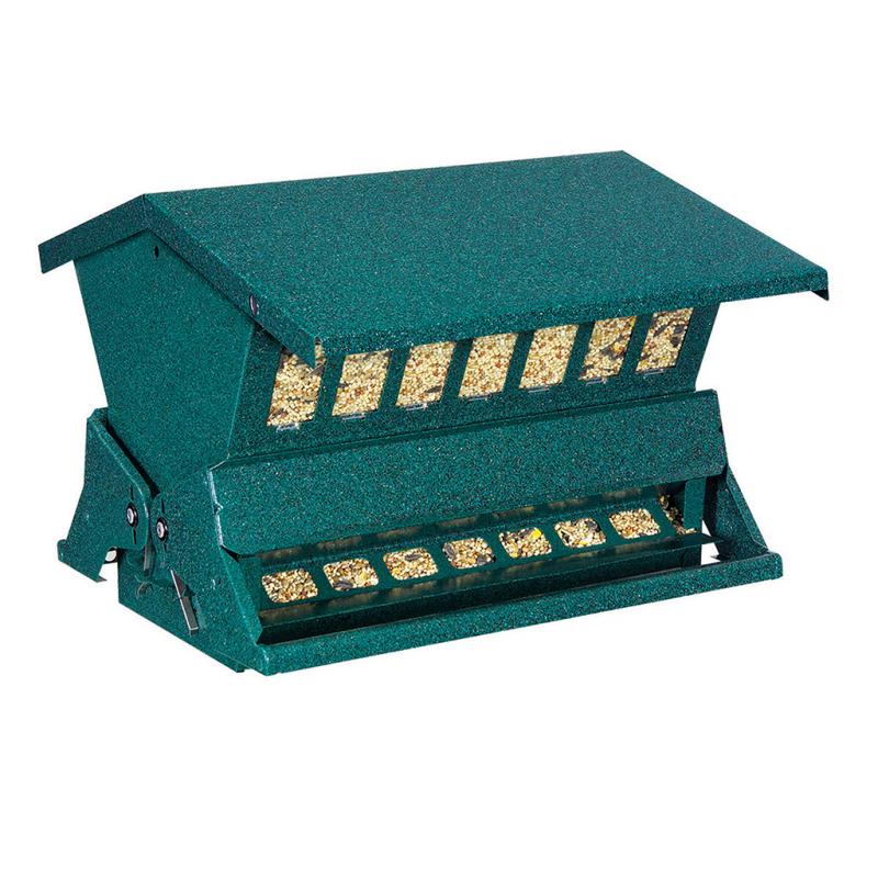 Extended Features: This slightly smaller version of the Original Absolute® feeder will also keep the squirrels at bay. Proudly made in the USA. Easy to fill and clean. Roof locks securely to keep squirrels out of hopper. Includes hanger and pole kit for multiple display options. Powder-coated steel durability.