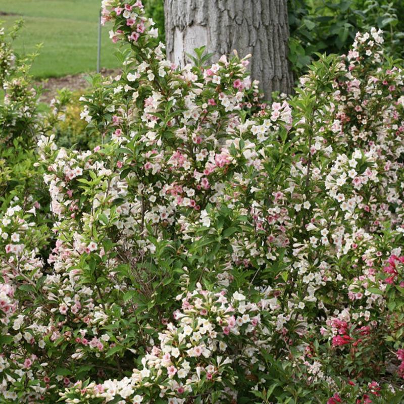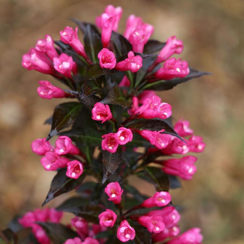 | Weigela florida 'VUKOZLyra', also known as Snippet® Dark Pink, this hardy dwarf has fresh, dark green foliage and dark pink blooms. They fit perfectly in just about any sunny spot in your landscape to add appealing structure and months of color. Snippet Dark Pink Weigela has thick, deep green foliage that perfectly sets off the vivid pink blooms. They appear in late spring along with other Weigelas, but then they continue to bloom all through summer with waves of fresh flowers. No deadheading required! FEATURES: Botanical Name: Snippet® Dark Pink Weigela florida 'VUKOZLyra' USPP 30,265 Common Name: Weigela Snippet® Dark Pink Features: Compact, Rebloomer, Mounded Habit, Dwarf Habit Bloom Time: Spring - Summer Light Requirements: Full Sun Attracts Hummingbirds Resists Deer, Rabbits Mature Plant Size: 12 - 24 inches high by 12 - 24 inches wide Zone 4 - 8 Proven Winners® | |