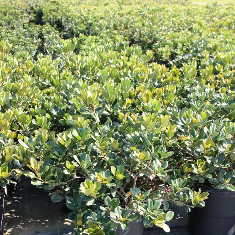 | Raphiolepis Indica 'Conia', also known as Indian Hawthorn Olivia™, this beautiful small evergreen shrub has clusters of white flowers in early summer. Vigorous growth with excellent branching to create a full uniform shrub. Sun to part shade. FEATURES: Botanical Name: Raphiolepis Indica 'Conia' PP#9399 Common Name: Indian Hawthorn Olivia™ Features: Foliage Interest, Mounded Habit, Low Maintenance Bloom Time: Spring - Fall Light Requirements: Full Sun -Partial Sun Attracts Birds Resists Deer, Resists Disease Mature Plant Size: 5 feet Zone 7 - 11 | |