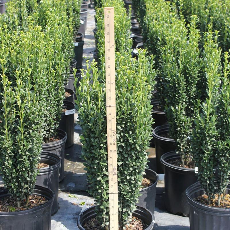 | Ilex crenata 'sky Pencil' is a very slender upright growing holly with glossy green leaves. Makes a great vertical statement in containers or the landscape. Perfect for small gardens in full sun. FEATURES: Botanical Name: Ilex crenata 'sky Pencil' Common Name: Japanese Holly Sky Pencil Features: Evergreen, Winter Interest, Upright Habit Bloom Time: Grown for Foliage Light Requirements: Full Sun -Partial Sun Resists Deer Mature Plant Size: 6 feet Zone 5 - 9 | |