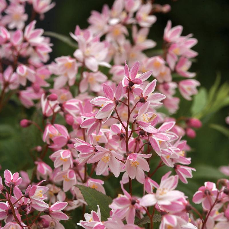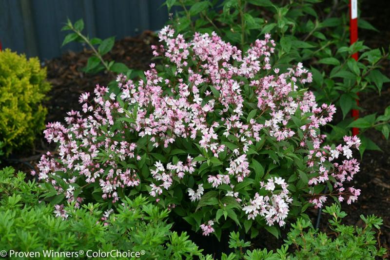 | Deutzia Yuki Cherry Blossom® is the first ever low growing, pink blooming deutzia. It can tolerate full to part sun. Attracts hummingbirds and is deer resistant. FEATURES: Botanical Name: Deutzia x 'NCDX2' PPAF Common Name: Deutzia Yuki Cherry Blossom® Features: Fall Interest, Small or Miniature, Drought Tolerant Bloom Time: Spring Light Requirements: Full Sun -Partial Shade Attracts Hummingbirds Resists Deer Mature Plant Size: 1 - 2 feet Zone 5 - 8 Proven Winners® | |