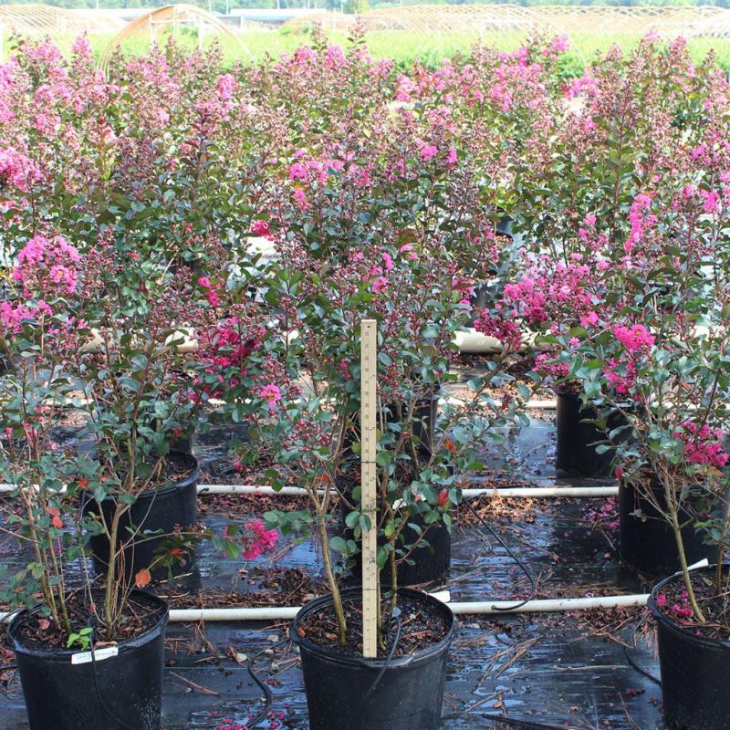 Interest: Bright pink flowers from crimson buds all summer, orange leaves in fall.