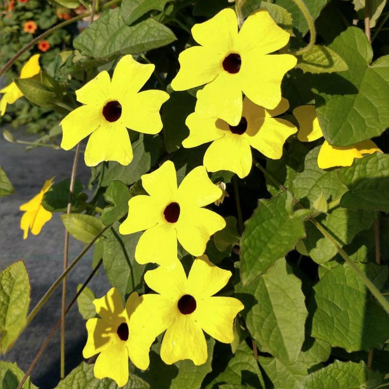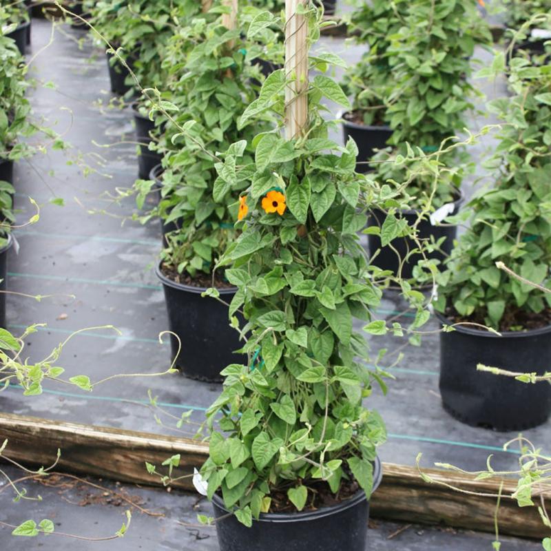 Extended Features: Thunbergia Sunny™ Arizona Glow, also known as Black-Eyed Susan Vine, this climbing vine has bright orange blooms with a dark eye. Great for the container or in the landscape on a trellis, plus it will bloom all summer long. FEATURES: Botanical Name: Thunbergia Sunny™ Arizona Glow Common Name: Black-Eyed Susan Vine Sunny™ Arizona Glow Features: Heat Tolerant, Low Maintenance, Climbing Habit, Trailing Habit Bloom Time: Summer - Fall Light Requirements: Full Sun Attracts Butterflies, Bees Mature Plant Size: Wooden stake Zone 9 - 11