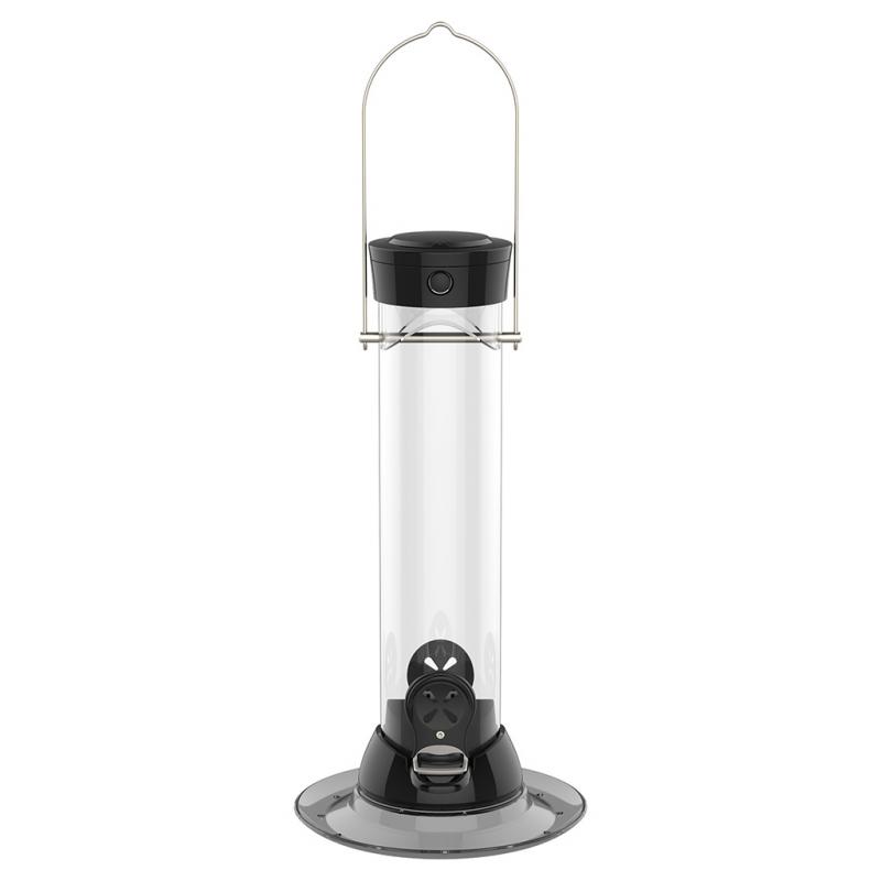 | The world’s cleanest feeders just got cleaner! Twist-and-release removable base technology makes cleaning a breeze and helps maintain the health of birds. The two-part port configuration permits unobstructed seed flow and gives the feeder an elevated level of design elegance. The wide comfort perch feature will attract a greater variety of birds. Spring-loaded flip top enables the feeder to be opened and closed with one hand. Tray included. |