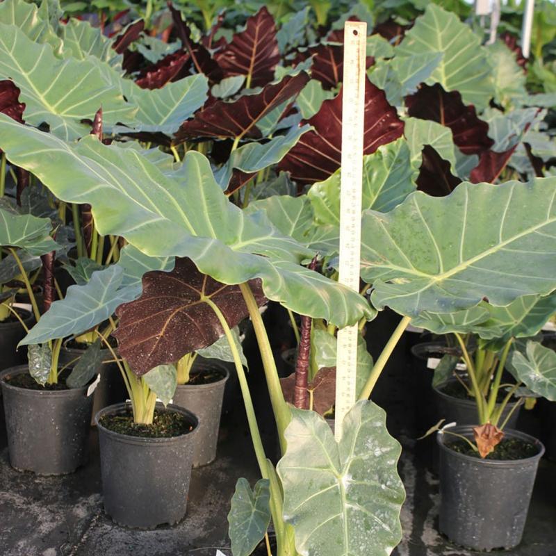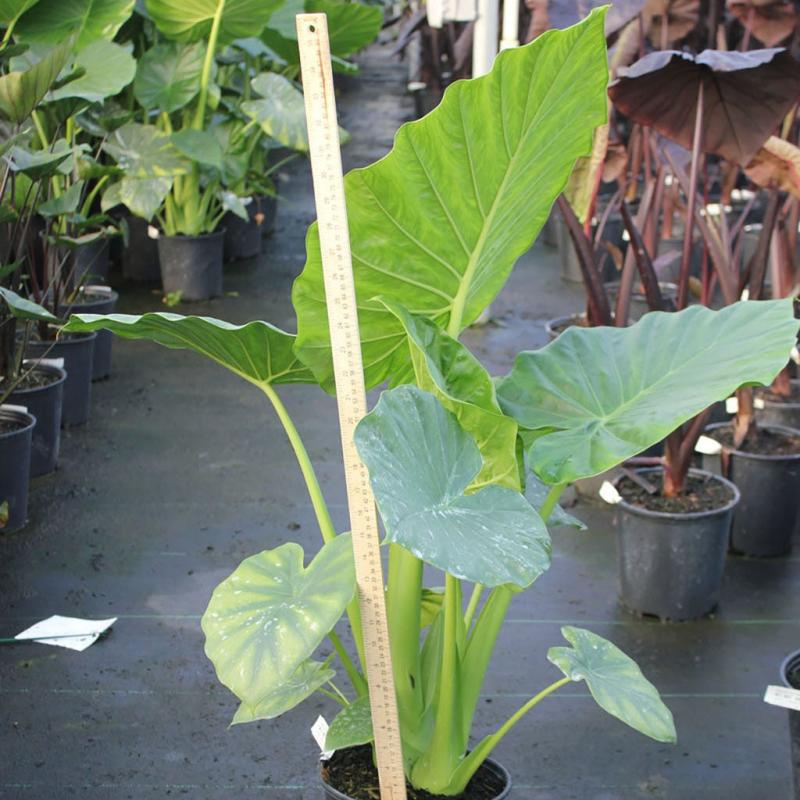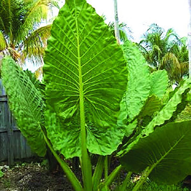 | Alocasia macrorrhiza 'Borneo Giant', also known as Upright Elephant Ear, this large tropical looking plant has upright green leaves on rigid stems. The large bulb forms a clump 10-15' tall. Grows well in soggy soils in full sun or light shade. Makes a great accent in any garden. FEATURES: Botanical Name: Alocasia macrorrhiza 'Borneo Giant' Common Name: Upright Elephant Ear Borneo Giant Features: Grown For Foliage, Upright Habit Bloom Time: Grown for Foliage Light Requirements: Full Sun -Partial Sun Mature Plant Size: 7 - 10 feet Zone 7 - 11 | |