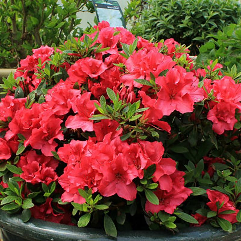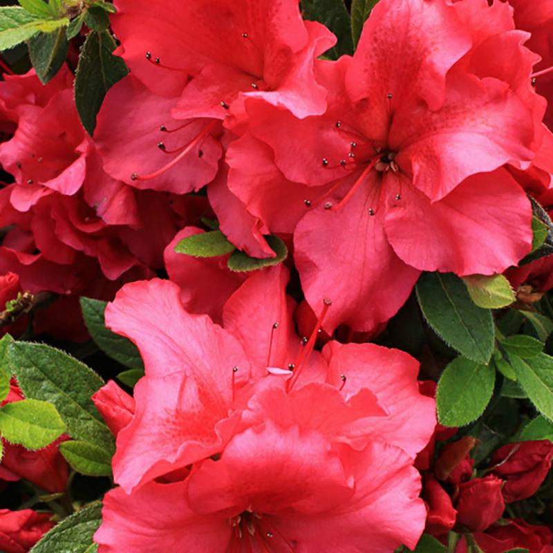 Extended Features: Azaleas are a classic southern plants, putting on a show of stunningly colorful flowers to kick of spring. They do best in dappled sunlight, but can tolerate part sun as well. Azaleas are semi-evergreen shrubs, keeping their outermost leaves throughout the winter. Bloom-a-Thon® Azaleas are extra special, as they bloom not once, not twice, but multiple times throughout the year! They explode in early spring with color, announcing the season, then take a few months off and bloom sporadically starting in late summer and lasting through the fall. Bloom-A-Thon® Red has lovely bright red flowers and grows up to 5 feet tall in time. FEATURES: Botanical Name: Rhododendron x 'RLH1-1P2' PP21,562 Common Name: Azalea Bloom-a-Thon® Red Features: Rebloomer, Fall Interest, Heat Tolerant, Small or Miniature Bloom Time: Spring - Fall Light Requirements: Full Sun -Partial Sun Resists Disease Mature Plant Size: 3 - 5 feet Zone 6 - 9 Proven Winners®